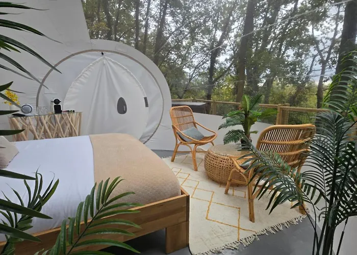 Situated about 10 minutes' drive from Maison de la Pierre du Sud de l'Oise Museum, La Bulle Perchee De Chantilly invites guests to relax at a terrace.